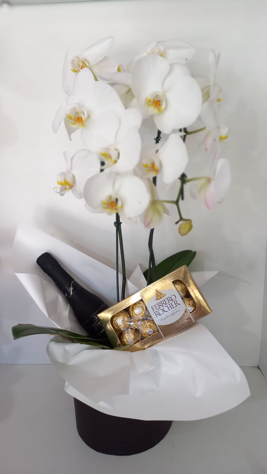 Caixa orquidea chocolate e champagne pequena.