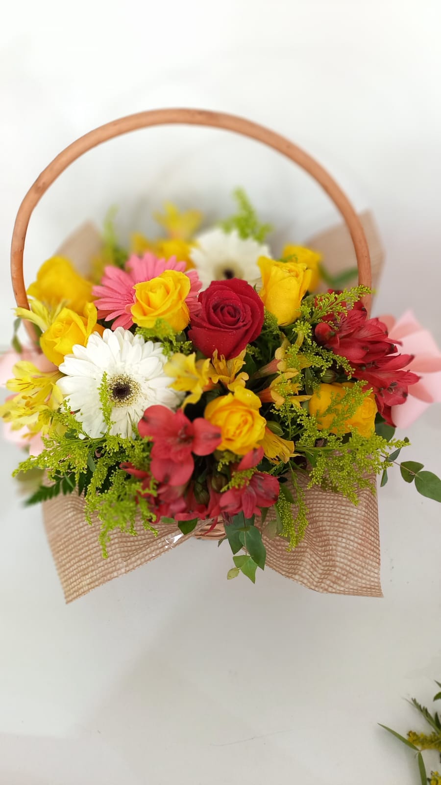 CESTA DE ROSAS E FLORES DO CAMPO